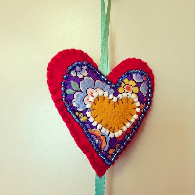 Felt hearts jingles for doors or wall decoration.